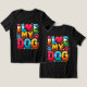 Das Design des T - Shirt enthält den Satz "I Liebe My Dog" in fett gedruckter, spielerischer Typografie. Das Wort "Liebe" wird durch ein großes rotes Herz repräsentiert und verleiht dem Wort einen lebendigen Pop. Um den Text herum sind niedlich, Pfotenabdrücke und kleine Hundeabbildungen wie Knochen und ein Hundehalsband. Das Design ist schlicht, gemütlich und perfekt, um die Zuneigung eines Hundebesitzers in einem lässigen und unterhaltsamen Stil auszudrücken.