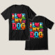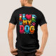 Das Design des T - Shirt enthält den Satz "I Liebe My Dog" in fett gedruckter, spielerischer Typografie. Das Wort "Liebe" wird durch ein großes rotes Herz repräsentiert und verleiht dem Wort einen lebendigen Pop. Um den Text herum sind niedlich, Pfotenabdrücke und kleine Hundeabbildungen wie Knochen und ein Hundehalsband. Das Design ist schlicht, gemütlich und perfekt, um die Zuneigung eines Hundebesitzers in einem lässigen und unterhaltsamen Stil auszudrücken.