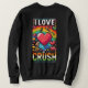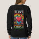 Das T - Shirt-Design für "I Liebe My Crush" zeichnet sich durch ein spielerisches, romantisches Thema mit kühnen, lebendigen Schriften aus. Der Satz "I Liebe" ist in einem großen, auffälligen Schriftart geschrieben, mit dem Wort "Crush" in einem anderen Stil, möglicherweise mit einem Herzsymbol oder spielerischen Verzierungen. Helle Farben wie Rot oder Rosa für die Herzelemente kontrastieren mit dem Hintergrund und machen es zu einem lustigen und jugendlichen Design. Das Gesamtbild ist lichtdurchflutet, ideal, um Zuneigung mit einer Touch von Launen auszudrücken.
