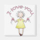 niedliches Mädchen, das das schlanke Sprichwort "I Liebe you" hält