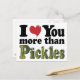 Der lustige Artikel sagt, ich Liebe dich mehr als Pickles. Macht ein lustiges Geschenk für den Pickle Liebhaber in Ihrem Leben.