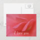 Ich Liebe Sie Postkarte mit rosa Rosenblätter. Einfach und bis zum Punkt; lass ihnen wissen, wie Sie sich fühlen. Perfekt für Valentinstag