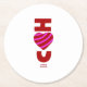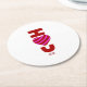 Sie können meinen Valentinstag bewundern, zeichnend und romantisches zeichn, das ich "I Liebe You" nenne, eines rot-rosa gestreiften Herzens, das auf diesen runden Untersetzer mit Papier gelegt wurde.