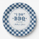 Feierliche und stilvolle Teller für ein "I Do Barbecue"-Ereignis im Hinterhof. Personalisieren Sie mit den Namen und Datum der Braut und des Bräutigams. Enthält eine marineblau-weiße Gingham / Tischdecken karierte gemusterte Grenze und elegante rustikale Typografie. Ideal für einen lässigen Sommer GRILLEN Hochzeitsfeier oder Empfang im Freien.
