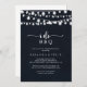 Diese "I Do"-GRILLEN mit rustikalen Streichellichtbeleuchtung lädt zu einer modernen Verlobungsfeier, einem Probe-Dinner, einer Pärchendusche, einem Party oder einer Hochzeitsfeier ein. Das Design zeichnet sich durch schöne handbemalte Saitenleuchten in dunkelblauem Hintergrund aus. Das einfache und elegante Design zeichnet sich durch klassische und extravagante Schriftzeichen in Schwarz und Weiß aus.