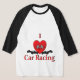 Großartiges Renndesign für den Rennfahrer. Ein großes Herz mit Schachbrett-Fahnen durchquert in der Mitte. Rennwagen auf beiden Seiten machen dies zu einem einzigartigen "I Heart Design".