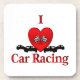 Großartiges Renndesign für den Rennfahrer. Ein großes Herz mit Schachbrett-Fahnen durchquert in der Mitte. Rennwagen auf beiden Seiten machen dies zu einem einzigartigen "I Heart Design".
