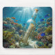 Ein Liebesbrief in einer Weinflasche, der auf dem Meeresgrund ruht, umgeben von tropischen Fischen und beleuchtet von Sonnenlicht