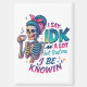 Lebhaftes, farbenfrohes Design mit einem weiblichen Skelett, das Kaffee schlängelt. Der farbenfrohe Text lautet: "Ich sage IDK viel, aber vertraue mir, ich weiß". Dieses Design ist auf einer Vielzahl von Produkten erhältlich.
