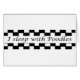 Eine Schwarzweiss-Karo Grenze und "ich schlafen mit Pudeln".
