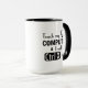 Kluge Touch mein Computer schneide ich Sie Typografie-Tasse. Text im Schwarzen liest Touch mein Computer, den ich Ctrl X (Schnitt) Sie werde. Lustige Computertechnologie-Bürokaffee-Tasse, reisen viel oder Bier Stein. Kluges Geschenk für Computerprogrammierer. Geek-Spaß. Entwurf auf beiden Seiten von der Tasse.
