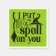 Dieses klassische Halloween-Design präsentiert den sprichwörtlichen Satz "I Put a Spell on You" in einem kühlen, gotisch inspirierten Schriftart. Das Schwarz-Weiß-Farbschema verstärkt die unheimliche Atmosphäre und macht das Design perfekt für die Halloween-Saison. Zu dem Text gehören ikonische Hexenelemente, darunter ein spitzer Hexenhut, ein Broomstick, ein Spinnennetz und eine winzige Spinne, die alle angeordnet sind, um eine bezaubernde Komposition zu schaffen. Die subtile Detaillierung der Punkte rund um den Text fügt eine Touch von magischem Charme hinzu.