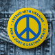 Ich stehe mit der Ukraine für einen gerechten und dauerhaften Friedensgegner mit Friedenssymbol. Blau, anpassbarer Text auf gelbem Hintergrund.