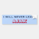 Dieses defiant AutoaufkleberAusrüstungsbeschreibungen das Sprichwort "ICH VERLASSE NIE AJAX". Es bezieht sich auf Ajax, Ontario, Kanada.