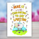 Der Hintergrund dieser Karte ist weiß. Von oben nach unten steht geschrieben " Hier ist eine kleine Karte für Sie zu sagen, ich vermisse Sie". Die Buchstaben sind handgezeichnet, gelb und orange. Die Worte sind gerahmt mit kleinen rosa und violetten Blumen. Unter ihnen ist der zeichn eines niedlichen kleinen Schafes, gezeichnet in einem Cartoon Stil. Es hat eine rosa Blume im Mund und lächelt den Betrachter an. Es ist stehend in einem grünen Grasfeld mit kleinen rosa Blume. Hinter dem Schaf ist ein blauer Himmel sichtbar