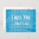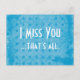 Ich vermisse Postkarten mit Vintagem blauen Hintergrund. Reads: "Ich vermisse dich.. das ist alles"