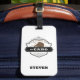 Dieses Design ist mit einem pelikanischen Fliegen über den Bogen am Land's End in Cabo San Lucas, Mexiko. Es gibt einen Text über dem Bogen, der sagt "Ich wäre eher in Cabo" in allen Kappen auf einem schwarzen Banner in der Mitte eines Wappen. Das Design hat eine leichte Grunge-Textur, die ihm ein abgenutztes Gefühl verleiht. Dieses Gepäckanhänger ist ideal für Lieben, die nach Los Cabos reisen.