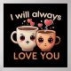 Ich werde Sie immer Liebe, Niedliche Teebecher Paar Valentine.
