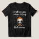 Erleben Sie den spukhaften Geist dieses spielerischen Skeletts-T - Shirt im Chibistil! Mit einem niedlichen Vektordesign eines Skeletts ist dieses lustige und eigenartige T-Shirt perfekt für Halloween-Fans. Das Skelett wird in einem zauberhaften Stil der Chibi-Kunst gezeichnet, mit übergroßen Augen und einem schelligen Grinsen. Dieses Shirt, gepaart mit dem Slogan "wünscht euch ein haarsträubendes Halloween", ist eine Mischung aus Lustigkeit und Charme. Ob Sie sich für die Saison oder nur Liebe Halloween-Rhythmen anziehen, dieser T - Shirt wird Ihrem Kleiderschrank eine Touch Spaß hinzufügen.