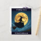 Eine super coole Hexe vor einem Vollmond Halloween Postkarte zu senden an Familie und Freunde.