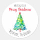 Hübsche Aquarellregenbogen Weihnachtsbaum personalisierte Urlaubsticker. Frohe Weihnachten wünschen