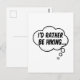 Ich möchte lieber wandern. Cartoon-Sprechblase in Schwarz-Weiß mit lustigem Zitat. Benutzerdefinierte Postkarten. Ein Design für Menschen, die Liebe wandern.