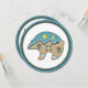 Invitation avec une icône d'ours amérindien avec des symboles et des motifs en bleu clair et marron.