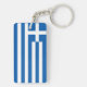 Icône de la Garde Evzone grecque (tsolias) tenant un fusil, portant fès rouge, fustanella et tsarouchia. Couleur arrière - plan personnalisée. Texte personnalisé. Drapeau de la Grèce à l'arrière.