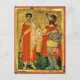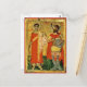 Vintages Gemälde aus Wandgemälde. Saint Christopher schwingende Weihrauch und ein brauner Soldat mit Schild neben ihm.