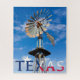 Ein grafisches Bild von Texas Pride, mit einer ikonischen Windpumpe, oder Windmühle, wie sie in vielen Ranch-Ländern zu sehen sind, und die rot-weiß-blaue Fahne über dem Namen des Staat. All dies über einen blauen Himmel mit weichen weißen Wolken.