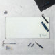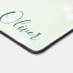Diese Schreibtischmatte hat einen dunklen, aquamarinen Schriftnamen in der rechten Offset-Ecke auf einem eisgrünen, ätherisch-hellgrünen Hintergrund.