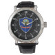 Uhr, Vintage Männeruhr mit schwarzem Lederarmband