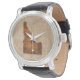 Uhr, Vintage Männeruhr mit schwarzem Lederarmband