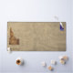 Eine Karte von Idaho, mit einer Hautstruktur aus Kartoffeln, überlagert auf einem Hintergrundebild. Eine einfache Möglichkeit, Idaho Stolz zu zeigen. Passen Sie Ihren eigenen Text an.