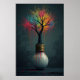 Diese beeindruckende Wandkunst zeigt eine surreale Verschmelzung von Natur und Kreativität - ein dunkler, blätterloser Baum, der von der Oberseite einer Glühbirne blüht. Die Äste explodieren mit kräftigen Splash aus Rot, Gelb, Blau und Orange, als ob die Ideen selbst in Farbe ausbrechen würden. Tropfen von Farbe kaskadierten in die Glühbirne hinab, symbolisieren den Fluss von Vorstellungskraft und Innovation. Set vor einem stimmungsvollen, dunklen Hintergrund, kontrastiert das Stück mit der Kronenkraft des Baumstamms und der strahlenden Energie seiner farbenfrohen Krone, was es zu einer kühlen Aussage über den Power der Kreativität macht, die Welt zu beleuchten.