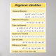 Identités algébriques Poster mathématique du lycée pour l'algèbre Formules mathématiques de base commune. Pour plus d'affiches de maths visitez : www.zazzle.