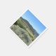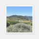 Ein landschaftlicher Ausblick vom Canberra Arboretum präsentiert eine üppig grüne Landschaft unter einem klaren, blauen Himmel, mit schwarzem Berg, überragt von einem Kommunikationsturm im Hintergrund. Eine Vielzahl an Vegetationen, darunter Baumreihen und Sträucher, werden durch einen Blick auf die Wasserkörper in der Ferne ergänzt.