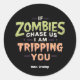 If Zombies Chase Us I’m Tripping You Funny Hallowe Runder Aufkleber