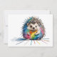Ein freundlicher Igel in bunten Farben, eine kindliche Zeichnung eines Igels, mit Tusche und Kreide, gekleckst und geschmierte ist die Farben als Stil und Effekt des lustigen Bildes.