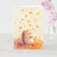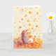 Diese herzzerwärmende Illustration zeigt einen bezaubernden Igel, der glücklich in einem Haufen lebendiger Herbstblätter spielt. Der Igel ist von farbenfrohen Blätter in Rot-, Orange- und Gelbtönen umgeben, die eine fröhliche und ruhige Herbstszene schaffen. Mit einem fröhlichen Ausdruck klebt es in seinen Pfoten ein Blatt und erinnert an den gemütlichen Geist der Herbstsaison. Die weiche Aquarell-Technik steigert die Wärme und den Charme und macht sie zum perfekten Design für eine herabgesetzte Grußkarte.