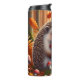 Diese charmante Abbildung zeigt einen niedlichen Igel mit großen blauen Augen, der sanft einen großen gepunktet-Rot-Weiß-Pilz mit seinen winzigen Pfoten hält. Die Szene ist Set in einem Herbstwald mit hohen Bäumen, abfallenden orangen Blätter, Farnen und anderen bunten Pilzen verstreut auf dem Waldboden, wodurch eine skurrile und bezaubernde Herbstatmosphäre entsteht.
