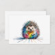 Ein freundlicher Igel in bunten Farben, eine kindliche Zeichnung eines Igels, mit Tusche und Kreide, gekleckst und geschmierte ist die Farben als Stil und Effekt des lustigen Bildes.