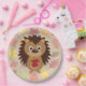 Herbstlicher Igel mit apfelförmigen Tellern mit passenden Servietten.