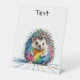 Ein freundlicher Igel in bunten Farben, eine kindliche Zeichnung eines Igels, mit Tusche und Kreide, gekleckst und geschmierte ist die Farben als Stil und Effekt des lustigen Bildes.
