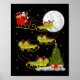 Iguana Santa Sleigh Flying Funny Magical Christmas Poster
