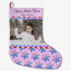 Ihr Bild/Text Rosa Blau Streifen Glitzer Schneeflo Großer Weihnachtsstrumpf