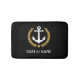 Zuhause oder Boot mit einer eleganten, nautischen Badmatte mit Ihrem Namen, Bootsnamen oder anderen gewünschten Texten individuell gestalten. Diese Hauswärmmatte verfügt über einen speziell entworfenen Bootsanker mit goldenen Lorbeerplakaten und schwarzem Sternemblem. Sie können die Primärfarbe auch ganz einfach an Ihre aktuelle Dekoration oder Ihr aktuelles Thema anpassen.