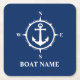 Ihr Bootname Compass Ankerplatz Blue Untersetzer Square