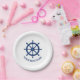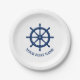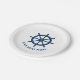Ihr Personalisierter Bootname oder -text mit einem Ships Wheel Helm auf benutzerdefinierten Paper Party Event Tellern.