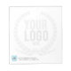 Ein individuelles Notizblock mit Ihrem Firmenlogo verblasst im Hintergrund, mit einem Namen und Jobtitel nach unten.